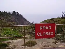 The majority of Blackgang's Victorian coastal development, along with the chine itself, was obliterated by landslides and coastal erosion over the 20th century, part of a general pattern of erosion affecting the Undercliff area.[4] A major landslide severed the old road between Blackgang and Niton in 1928, and subsequent ones destroyed most of the remaining road segment and adjoining houses, as well as the Sandrock Spring in 1978.[2] Currently Blackgang comprises the amusement park (whose buildings incorporate some of the village's former residential houses such as the Blackgang Hotel and Five Rocks), a tearoom, and a few other houses.