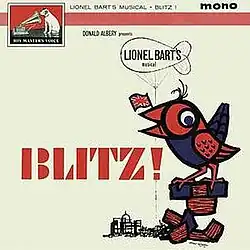 Blitz! is a musical by Lionel Bart. The musical, described by Steven Suskin as "massive", was set in the East End of London during the Blitz (the aerial bombings during World War II). The story drew on Bart's childhood memories of London's Jewish East End during the Blitz and, like most musicals, centred on a romance between a young couple, in this case a Jewish woman and a Cockney man, although the largest role and main point-of-view character is that of Mrs Blitztein, the young woman's mother.[1] Steven Suskin describes it as "Abie's Irish Rose set against the burning of Atlanta."[2] Bart himself described the play as "…three human stories inside an epic canvas; the major human conflict – the major plot – personifies the spirit of London and how that spirit developed during the period of the piece."[3]