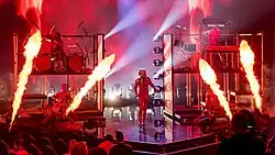 The dark rock song[2] was released as the lead single from their eleventh studio album Blood & Glitter (2022). Lead singer Chris Harms revealed that the band had actually applied to represent Germany for many years leading up to their win in 2023.[3] Starting on 24 February 2023, fans were able to vote for their favourite entry online.[4] The performance was described as a "fiery glam rock show",[5] somewhere between "dark" and "gothic metal".[6] The band eventually won the contest, having earned 189 points consisting of 146 from fans and viewers and 43 points the international juries.[7]