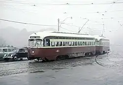 March 13, 1950, two-car, multiple-unit PCC trains started running during the rush hours. The first trains used pairs of A7-class PCCs of the 4400-series.[6]: 76–77