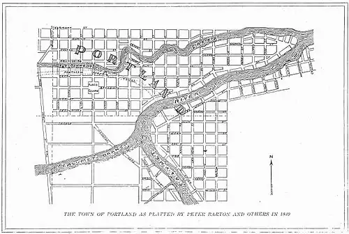 - On April 13, 1839, Peter Barton and his partners (who included Gurdon Hubbard and John H. Kinzie)[34] registered the plat of "Portland" with the state of Illinois. Portland had been laid out on land purchased from the federal government adjacent to the settlement of Blue Island which was situated south of Vermont Street (more or less) and east of Wabash Road (what is now Western Avenue uptown, again, more or less). The Little Calumet River ran through the center of the platted area, and its promoters felt with this advantage that it would become a prosperous river town. They used their influence to have the local post office name changed from Blue Island to Portland (a circumstance that as time went by would be a source of aggravation to the people of Blue Island), and on May 1, 1839, this was accomplished. The post office, however, wasn't located within the platted area of Portland since there were no buildings in which to operate it, but in fact was on contiguous property to the west at the Blue Island House. Portland was never incorporated – it existed for many years by and large only as a plat of survey. No buildings of any consequence were erected there for nearly half a century. While some of the street names from Portland remain (although sometimes not entirely on their original courses), any of them that were laid out (and in fact a majority of them never were) waited in most cases for many years until they were needed. About half of the area was eventually annexed within what would become the corporate boundaries of Blue Island as time went by, and significant other sections of it became parts of the villages of Calumet Park and Riverdale, the Joe Louis the Champ golf course, and unincorporated Calumet Township. According to John Volp, whose family had lived in Blue Island since 1862: