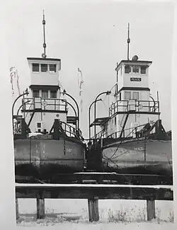 Frank Broderick 1965 Diesel tugboat (85 m (280 ft) long, 13 m (42 ft) beam, 250 mm (10 in) draft, 2,880 hp (2,150 kW)) launched by the Northern Transportation Company Limited for use in the western Arctic Ocean of the NWT. It was based in Tuktoyaktuk. NTCL sold it in 1995.