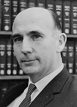 Ellicott was elected as the Liberal member for the Division of Wentworth in the 1974 election.[5] He was Attorney-General in the Fraser Ministry from 1975 to 1977. Ellicott resigned as Attorney-General as a result of a dispute with Malcolm Fraser over the payment of costs in the Sankey v Whitlam case,[6] where he believed that the Commonwealth should have paid the costs of the private individual, Danny Sankey, as well as those of the politicians, Gough Whitlam, Rex Connor, Jim Cairns and Lionel Murphy, but Fraser disagreed.[7]