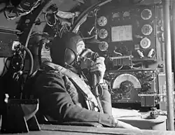 The wireless operator at his post aboard a Lancaster