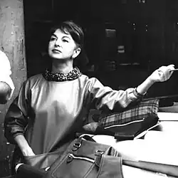 In 1962, Cashin was hired by Miles and Lillian Cahn as the first designer for Coach, a newly-formed women's accessory business. Coach was a division of their wholesale men's accessory company, Gail Leather Products, and internally, it was referred to as "the Bonnie Cashin account," as she was a contracted designer, never a Gail Leather or Coach employee.[9][2] Her classic designs for Gail's Coach division during the early 1960s included the shopping bag tote, the bucket bag, shoulder bag and a clutch-style purse with a removable shoulder strap.[5][10] In 1964, Cashin introduced a brass turn lock/toggle fastening that was featured on her designs produced by the Cahns as well as on all garment and accessory collections produced by a range of manufacturers in the US and abroad, including Philip Sills, Meyers, Crescendoe-Superb, HBA, and D. Klein. Cashin designed two small collections for the Cahns each year to complement her garment designs for other manufacturers until 1974. In 1975, Meyers Manufacturing took over the production of her signature handbag designs.[11][2]