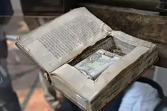 The earliest forms of writing were etched on tablets, transitioning to palm leaves and papyrus in ancient times. Parchment and paper later emerged as important substrates for bookmaking, introducing greater durability and accessibility.[14] Across regions like China, the Middle East, Europe, and South Asia, diverse methods of book production evolved. The Middle Ages saw the rise of illuminated manuscripts, intricately blending text and imagery, particularly during the Mughal era in South Asia under the patronage of rulers like Akbar and Shah Jahan.[15][16]