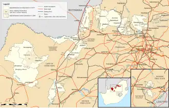 ![]() Location of Bophuthatswana (red) within South Africa (yellow). | |||||||||