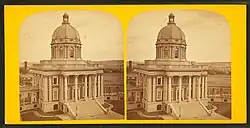 In the mid-19th century, "the hospital was suggested [...] by Elisha Goodnow, who, by his will, dated July 12, 1849, gave property to the city valued at $25,000, for establishment of a free city hospital in Wards Eleven or Twelve."[1] Architect Gridley James Fox Bryant designed the first hospital, built 1861–1864 on Harrison Avenue in the South End. It was renovated in 1875 and again in 1891–1892.[3]