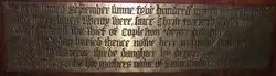 Monumental brass in Yealmpton Church to Isabella Fortescue (d.1580), wife of John Copleston