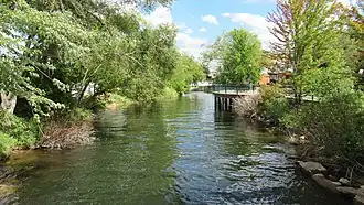 The Boyne City Mill Poind is in Boyne City, less than a mile from the river's mouth. The Mill Pond is not a true impoundment resulting from a dam on the river, but affects the river similarly in that it collects sediments and provides a large surface area that tends to raise the water temperature during the summer months.[6] The pond is called "Little Lake" in a 1901 plat book.[7]