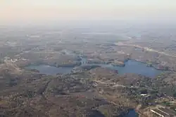 The Boyne River flowing into Oastler Lake (lower shore, centre)
