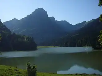 The Brünnelistock (2,133 m) is a mountain of the Schwyzer Alps, located on the border between the cantons of Schwyz and Glarus. It lies north of the Mutteristock, on the range between the Wägitalersee and the Obersee.