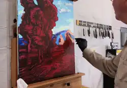 In 1994, he moved to Providence, Utah, where he focused on painting Western landscapes.[2] He discontinued freelance work in 2001.[11] In 2006, two of his works, Color of the Land[7] and the woodblock print Rock Moss,[12] won awards from the Deseret Morning News. He has been an artist-in-residence at the Maynard Dixon residence in 2004 and at Christopher Forbes' Trinchera Ranch in 2006,[4][6] received the third place award at the 2021 juried exhibition of the American Impressionist Society, and had work included in the annual Quest for the West exhibition[8][13] at the Eiteljorg Museum of American Indians and Western Art.[2]