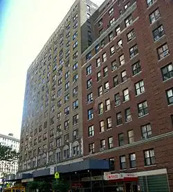 The Bradford Hotel is a New York City establishment which opened on October 18, 1924, at 206 - 22 West 70th Street in Manhattan. It cost $2 million to build and was designed by George F. Pelham. It was owned by the Lapidus Engineering Company, the same firm that controlled the Hotel Oxford, which opened in 1923.[1] The apartment hotel[2] is sixteen stories and occupied a plot 150 by 100 between Broadway (Manhattan) and West End Avenue. It contains four hundred rooms.,[3] each with private bathrooms, kitchenettes, and many with terraces.[4] It was being converted to a project for the elderly by January 1970.[5]