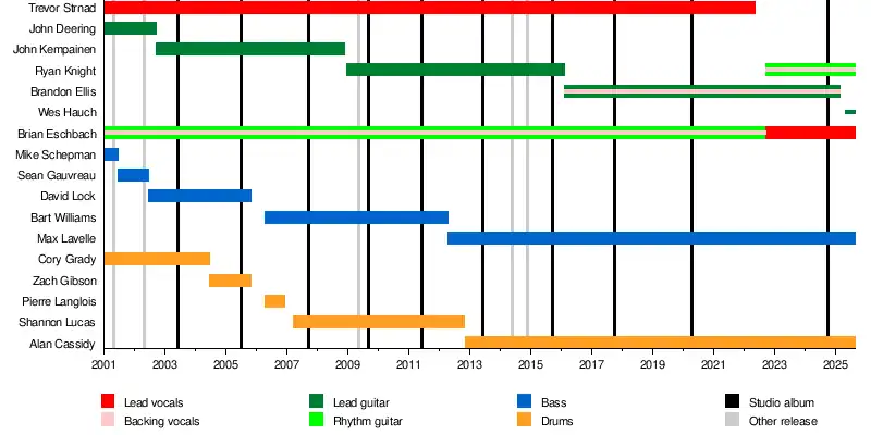 • Brian Eschbach – lead vocals (2022–present), rhythm guitar, backing vocals (2001–2022)