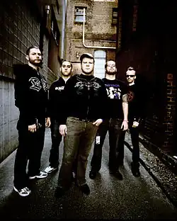 The Black Dahlia Murder in 2006. From left to right: Eschbach, former bassist Ryan Williams, former lead guitarist John Kempainen, Strnad and former drummer Pierre Langlois.