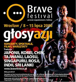 Brave Festival – Against Cultural Exile is an annual Polish music festival launched in 2005 by Song of the Goat Theatre Association.[1] It takes place in Wrocław, as well as in other cities in Lower Silesia. Since inception, artists from all over the world have been invited to present their musical/cultural traditions. The festival is intended as an opportunity for attendees to speak about where they come from, their values, their traditions and their spirituality. It aims to save and protect forgotten, abandoned and forlorn cultures.[2] Brave Festival also has a project called Brave Kids, which aims is to introduce, integrate and start a collaboration of artistic groups of children from different continents. Grzegorz Bral is the director of Brave Festival.[3]
