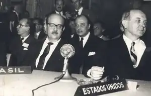For the White House, Brazil was approaching the Non-Aligned Movement, expanding its political relations with the Soviet bloc and, in international forums, testing the limits of its relationship and tending towards neutralism.[82] As part of his negotiations for American credit, Jango threatened to seek support from the Soviet bloc. Although with little credibility, this maneuver influenced American calculations.[83] This, coupled with the rejection of the use of force in the Missile Crisis, changed American views on the IEP.[84] An additional concern was the Dianopolis incident in 1962, after which Cuban support for a guerrilla project on Brazilian territory was discovered.[85][86] Still, there is the interpretation that domestic factors were more important than foreign policy in the deterioration of bilateral relations. Lincoln Gordon judged Brazilian foreign policy as unreal, but a learning process, and wanted to prioritize economic policy.[87]