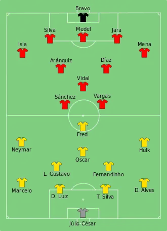 34. ^ "Brazil 1 Chile 1 (Brazil win 3–2 on penalties)". BBC Sport. 28 June 2014.