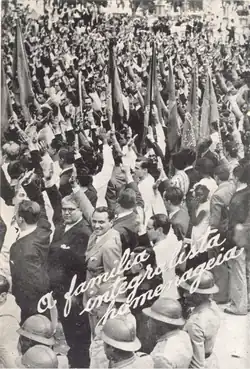 On November 23, 1935, at the behest of the Comintern, the so-called Communist uprising began, with the goal to take political power by force. On that occasion, the AIB militia actively participated in the counter-coup: they presented themselves at the barracks, provided information that anticipated the organization of several military garrisons, participated in blockades and helped with patrols; frustrating, as was later admitted by Luís Carlos Prestes, the uprising in Brazil.[7][8]