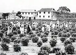 A Brazilian tea plantation around 1930. Tea leaves are harvested in this photo by Japanese immigrants.