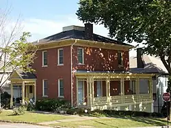 • Nathan Rambo House (1860) 1203 E. 9th Street. The two-story brick residence is a fine example of the "Cube-Form" Italianate house found in Davenport.[2] It features an Eastlake-style entrance porch.