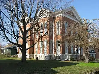 Bright B. Harris House is a historic home located at Greensburg, Decatur County, Indiana. It was built in 1871, and is a large 2+12-story, Italianate style brick dwelling. It has a low pitched gable and hipped roof, ashlar limestone foundation, and round arched windows.[2]: 5