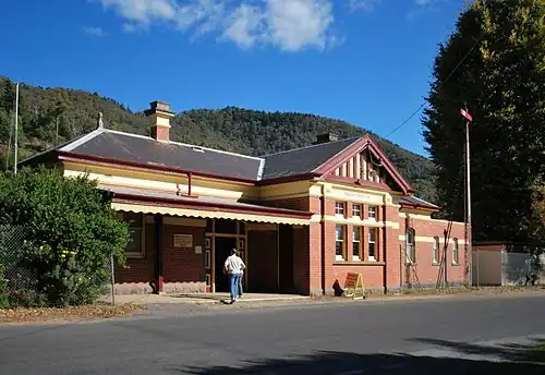 The former terminus retains a large brick station building and a goods shed. The station platform is still intact with a number of items of Victorian Railways rolling stock sitting on a short section of track fenced in with the station. The station building and grounds are maintained as a local museum.[2] It is now part of the Murray to the Mountains Rail Trail.