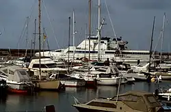 The Brighton Marina Act 1968 (c. ii) provided the legal basis for the construction of the marina. Brighton Corporation purchased the foreshore at the Black Rock site from the Crown Estate Commissioners for £50,000 on 1 March 1972. On the same day the land was leased to the Brighton Marina Company for a period of 125 years.[2] The architect of the original plan was David Hodges of the Louis de Soissons Partnership.[3] Construction of the marina commenced in 1971 and was opened for use in 1978.[4] The marina was officially opened by Queen Elizabeth II on 31 May 1979.[5] The original funders were the National Westminster Bank, the Electricity Supply Pension Fund and Royal Insurance.[6]