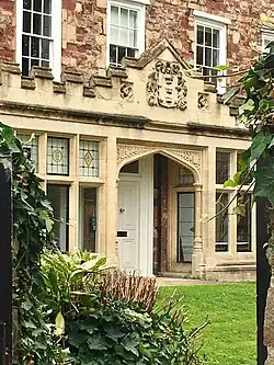 The main school building was part of St Augustine's Abbey, which was founded in 1140. This contains the refectory and a 13th-century right-hand archway, with upper walls from the early 16th century. It was extensively altered and partly refaced in the late 18th and early 19th centuries. It has been designated by English Heritage as a Grade II* listed building.[3] The Abbey House[4] and Deanery[5] are also Grade II* listed.
