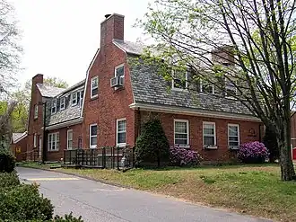 The Bristol Girls' Club building is located about four blocks south of Bristol center, on the south side of Upson Street just east of West Street. The building has two major portions, the older one a 2-1/2 story brick building in the Dutch Colonial Revival style. It is oriented perpendicular to the street, and fronts a much larger modern addition which houses primarily athletic facilities. The older structure is organized as a central block with flanking end blocks that only project slightly; each section is covered by a gambrel roof with dormers. The interior of the building houses offices, a kitchen and dining room, and smaller gymnasium spaces.[2]