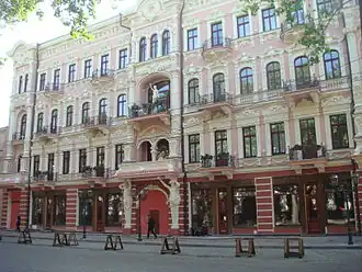 The hotel was built between 1898 and 1899 to designs by architects Alexander Bernadazzi and Adolf Minkus[4] and named the Bristol Hotel. Bernadazzi was an influential architect in Odesa at the time and the style of buildings in Odesa is assigned to him in particular. The name of the Bristol Hotel is thought to emblematic of luxury as another hotel built at that time was named the Hotel London.[5]