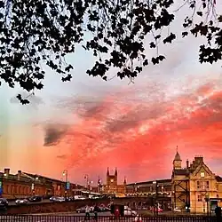 Bristol Temple Quarter Enterprise Zone, an enterprise zone with an area of 70 hectares (170 acres) centred on Temple Meads,[27] was announced in 2011,[28] and launched in 2012. Network Rail is a partner in coordinating development in the zone.[27] In November 2012, Network Rail announced a £100 million redevelopment of the station, with two unused platforms to be opened up. Station Approach Road will be turned into a public square and the station's main entrance moved to the north side.[29] A large bridge above the tracks at the east end of the station which was erected in the 1970s for postal traffic was demolished at Christmas 2014.[30] In November 2016, the University of Bristol announced that it plans to build a Temple Quarter Campus to the east of the station, replacing the derelict sorting office which was formerly connected to the station by the bridge.[31]