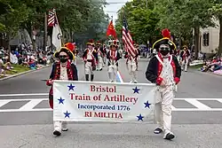 Bristol Train of Artillery Museum is an armory museum in Bristol, Rhode Island, which is the meeting place of the Bristol Train of Artillery, a militia artillery unit of the Rhode Island Island State Militia and a member of the Rhode Island Independent Military Organizations. The Bristol Train of Artillery was chartered on February 12, 1776 and has been in uninterrupted existence since then. The current building, which houses the museum collection, dates to 1843. The Museum "collection includes photographs, scrapbooks, drawings, paintings of events. Some records from the American Civil War, but much has been lost. Some exhibits of guns, uniforms, flags, hats, helmets, swords and other militaria."[1][2]