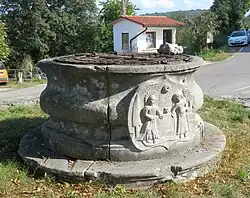 The village well in Brje pri Komnu is registered as cultural heritage. The wellhead is carved from stone in a bulging shape and stands on a round plinth. It is decorated with a relief depicting Jesus and the Samaritan woman that was carved by Mattia Kozman in 1827. The well is located on the main square in the village.[4]