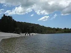 The lake is also of cultural significance to the Aboriginal population of North Stradbroke Island, the Quandamooka people, as they possess a spiritual and physical relationship with the ecosystem.[1] The indigenous population care for and protect the landscape, sharing traditional environmental management knowledge.[7][8]