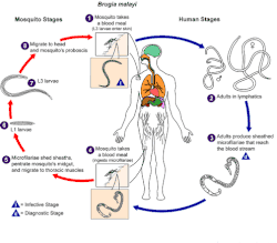 Development and replication of B. malayi occurs in two discrete phases: in the mosquito vector and in the human. Both stages are essential to the life cycle of the parasite.