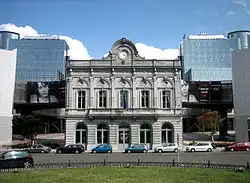The station was built between 1854 and 1855 by the Grande Compagnie de Luxembourg, as part of the Brussels-Luxembourg railway line it was constructing.[1] It was to service the new Leopold Quarter, hence its original name of Leopold Quarter railway station (French: Gare du Quartier Léopold, Dutch: Station Leopoldswijk). The lead architect was Gustave Saintenoy, who designed it in a neoclassical style, in keeping with the other buildings around the Place du Luxembourg/Luxemburgplein, which were built around the same time.
