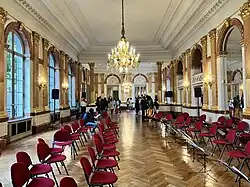 The Brussels Parliament building (French: Parlement de Bruxelles; Dutch: Parlement van Brussel) is a neoclassical building in Brussels, Belgium, housing the Parliament of the Brussels-Capital Region.[1] The building complex is located at 69, rue du Lombard/Lombardstraat, extending to the Rue du Chêne/Eikstraat. It largely dates from the early 20th century, although some wings date back to the 17th century and certain later renovations.
