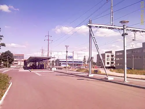 Buchs-Dällikon station was completely renewed between 2005 and 2008,[6] and the former station building was removed. The station is equipped with a park & rail facility (parking lot) to the south, and bicycle parkings. There are two tracks but only one side platform. The second track is used for crossing cargo trains, which use the mostly single-tracked Furttal line to bypass the city center of Zurich.