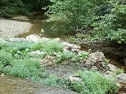 The stream begins at the confluence of the North and South Fork of the Buffalo at 36°42′58″N 90°58′37″W / 36.71611°N 90.97694°W / 36.71611; -90.97694 and its confluence with the Current is at 36°43′13″N 90°55′14″W / 36.72028°N 90.92056°W / 36.72028; -90.92056 adjacent to Buffalo Club.[1][2][3]