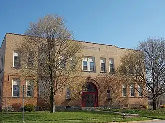 The school educated students in eight grades until 1927 when the ninth grade was added in preparation for the addition of high school classes. That same year Davenport architect Arthur Ebeling presented plans for the addition of a second story to the school building. A bond issue of $20,000 was passed in January of the following year, and J.H. Hunzinger was hired as the general contractor.[2] The rooms on the new second floor aligned with those on the first floor. An office was located over the main entrance. The lower grades were housed on the first floor. Grades 1 and 2 were located in the west classroom, grades 3 and 4 in the north classroom, and grades 5 and 6 in the east classroom. The second floor housed the upper grades. Grades 7 and 8 were located in the west classroom and grades 9 to 12 were all taught in the east classroom. A science lab and other specialized classes were housed in the north classroom. The basement was also used for classroom space. Home economics was taught in the east room, and mechanical training in the west room. The boiler room was under the north classrooms as it was previously.