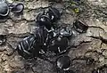 Similar species include Ascocoryne sarcoides and Exidia glandulosa.[5] Pseudoplectania species form black cups without a rough brown outer surface.[4] Galiella rufa has a light upper surface and dark outer surface, opposite from young B. inquinans specimens.[4] Exidia glandulosa and Neobulgaria pura are also vaguely similar.[4]
