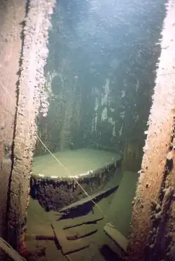 A bathroom in Bungsberg's wreck, on the starboard side, of the superstructure, just below the bridge