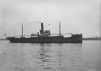 Also in 1924, Howaldtswerke built a fourth ship, to the same design, but for China Reederei. She was built as yard number 646, and launched as Eva. Her length was 250.8 ft (76.4 m); her beam was 38.5 ft (11.7 m); and her depth was 15.9 ft (4.8 m). Her tonnages were 1,504 GRT and 851 NRT. She had a single screw; driven by a three-cylinder triple-expansion engine that was rated at 143 NHP. She was equipped with submarine signalling. She was registered in Hamburg. Her code letters were RFHP.[4]