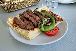 Burdur şiş, which is popular in and around Burdur, Turkey, is a type of kebab or köfte dish in Turkish cuisine.[1] It is made differently than şiş köfte, as it does not contain any spice or herbs except salt and it is always eaten with a special type of pide.[2] Burdur şiş obtained geographical indication from the Turkish Patent and Trademark Office in 2010.[3]