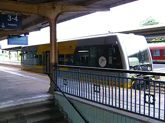 The Burgenlandbahn is a brand that DB Regio uses for their local passenger rail transport in southern Saxony-Anhalt, Germany. Since 1999, it has served several branch lines, some of them have been canceled in the meantime. With the Burgenlandbahn great hopes were combined to secure the area network by low operating costs despite low population density permanently.[1]
