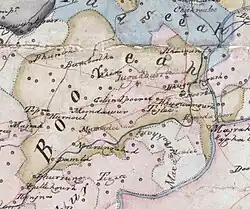 Detail of the main, continuous tract of territory of Buria State from a map created by the British East India Company, ca.1829–1835.