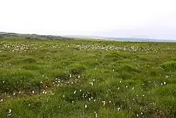 In the peat soils of the wet heath, plants include bog asphodel and bog violet. Moss species include Sphagnum papillosum and Sphagnum cuspidatum.[1]