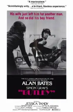 Butley is a 1974 American-British drama film directed by Harold Pinter and starring Alan Bates, Jessica Tandy, Richard O'Callaghan, Susan Engel, and Michael Byrne.[1] It was adapted by Simon Gray from his 1971 play of same name. It was produced by Ely Landau and released through Landau's American Film Theatre.